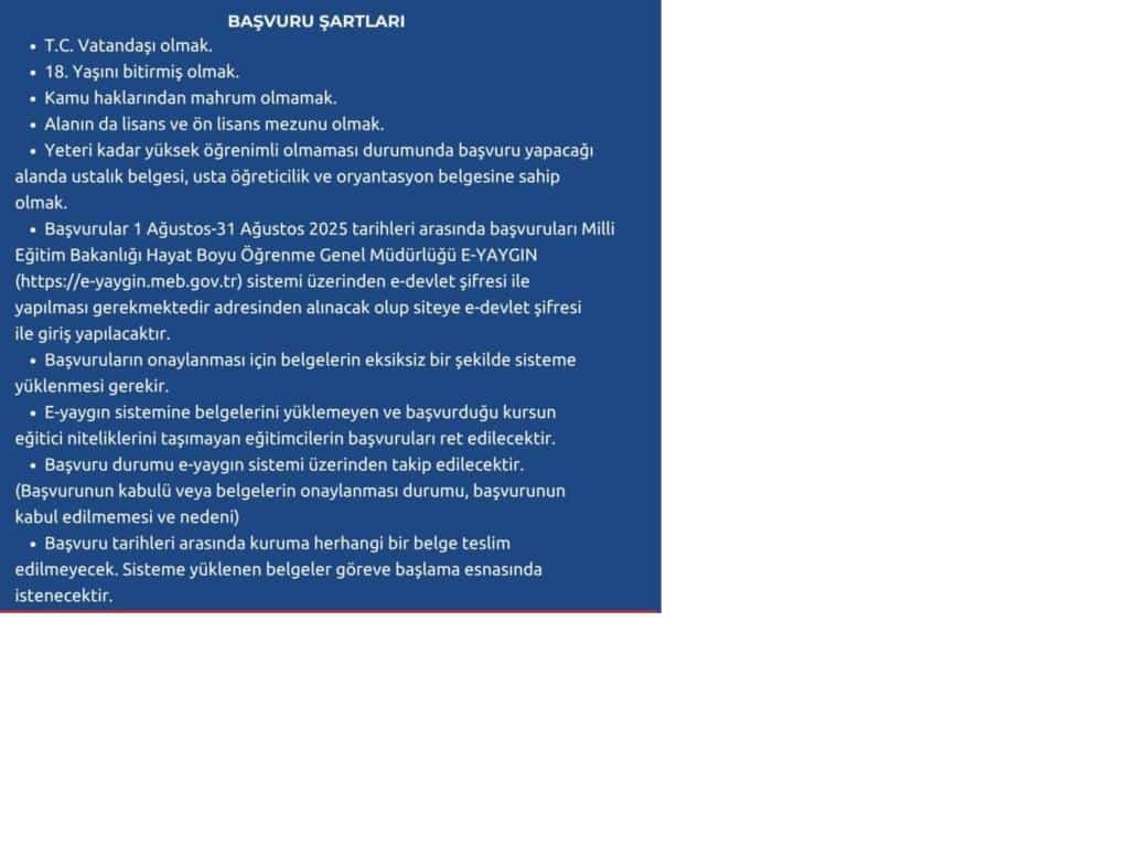 2025 - 2026 Eğitim Öğretim Yılı Usta Öğretici Başvuruları başlamıştır. Ayrıntılı açıklamaya duyurular bölümünde ulaşabilirsiniz.